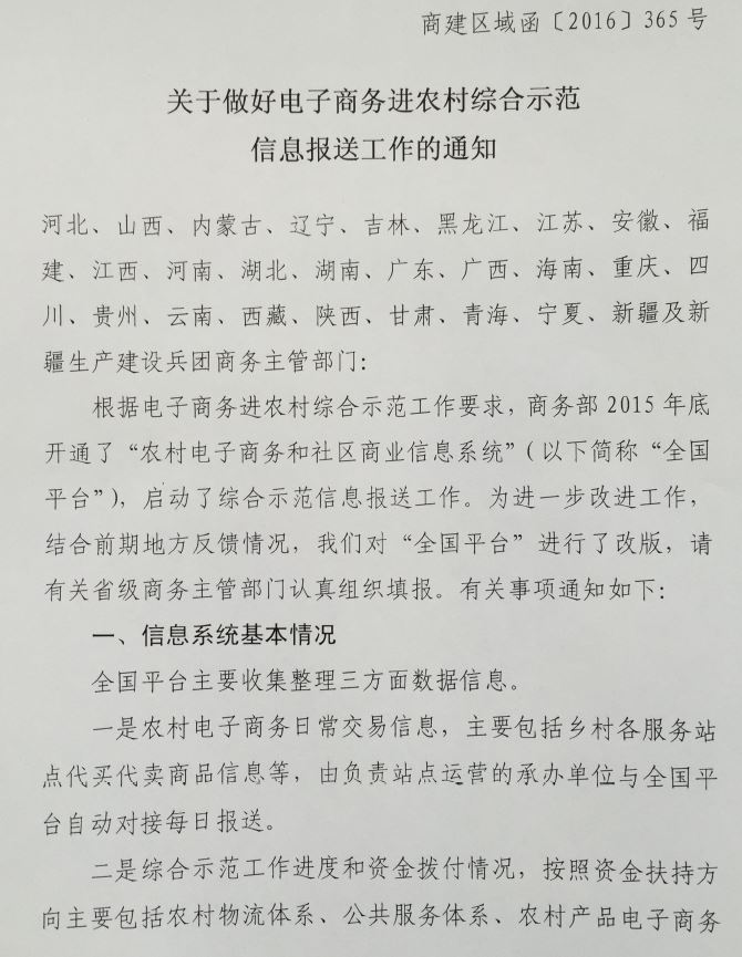 关于做好电子商务进农村综合示范信息报送工作的通知