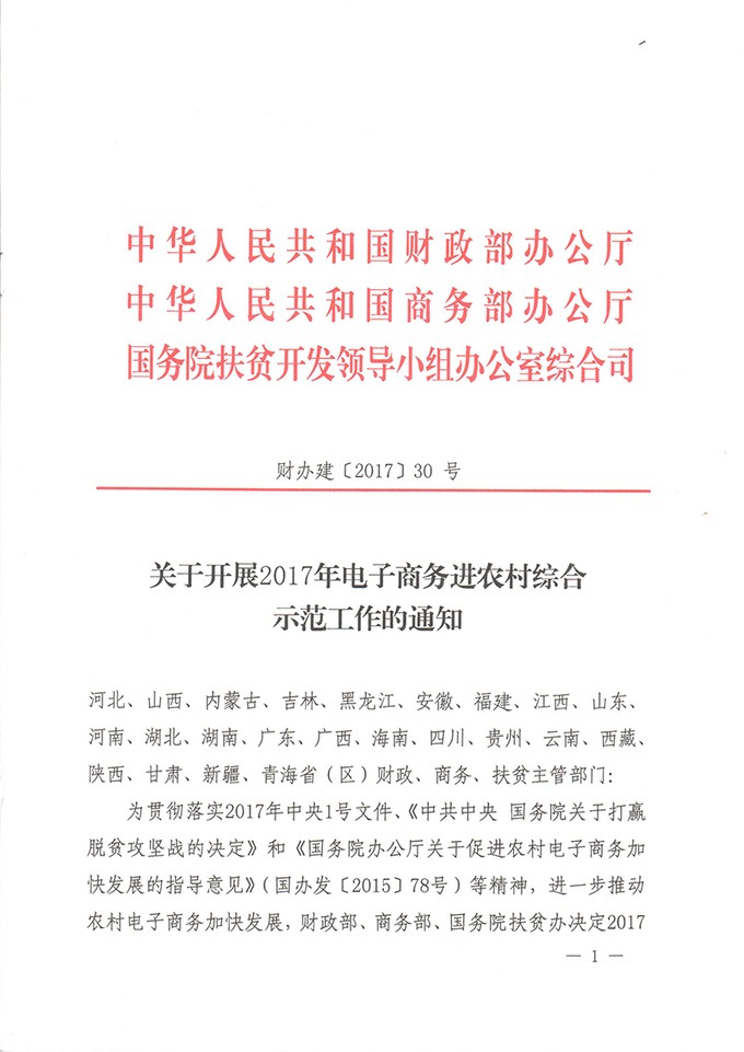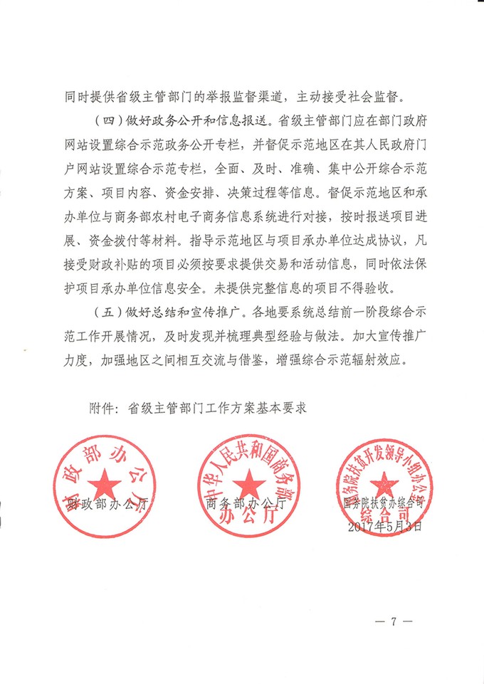 财政部办公厅 商务部办公厅 国务院扶贫开发领导小组办公室综合司关于开展2017年电子商务进农村综合示范工作的通知